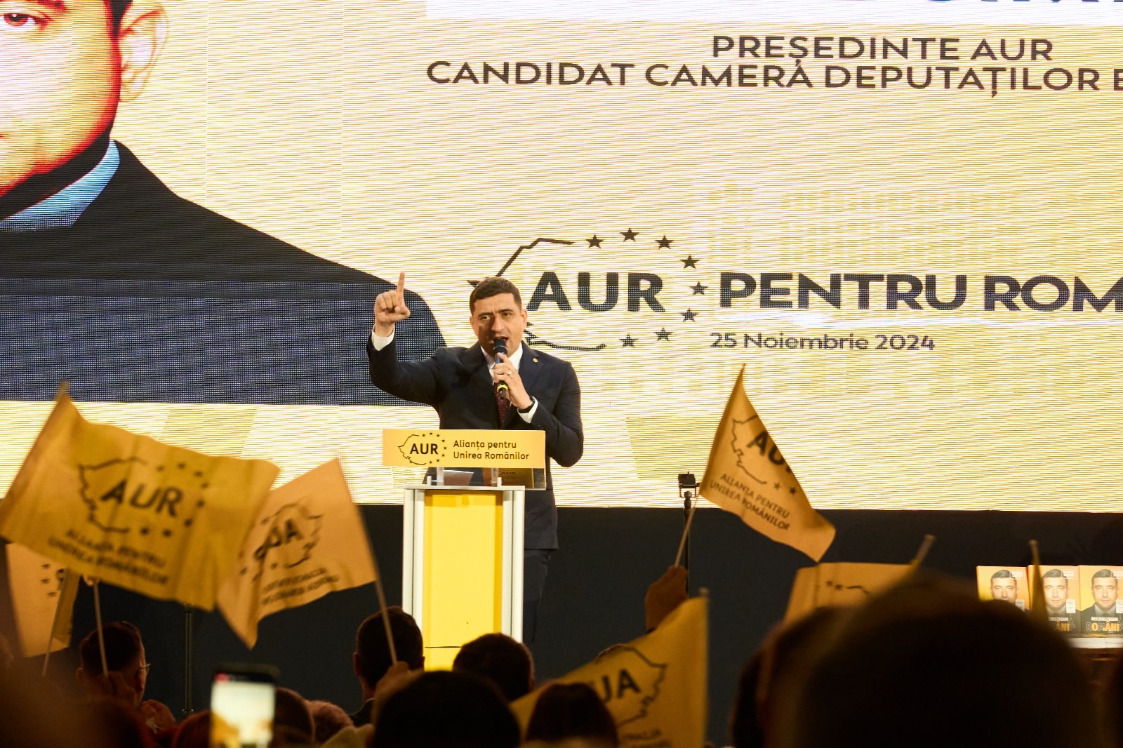Lupta asta nu e a mea, este lupta noastră. Este despre fiecare dintre voi. Este despre antreprenorii care se luptă să creeze locuri de muncă, chiar și atunci când statul le pune piedici. Este despre tinerii care, deși dezamăgiți, încă mai speră la un viitor mai bun aici, acasă. Tineri care au mers la vot și au pus ștampila pe un candidat suveranist. Un candidat pe care o să vă rog pe toți din structurile noastre interne să îl promovați, să îl reprezentați și să îi apărați voturile pe 8 decembrie, pentru că suntem singuri împotriva tuturor.
