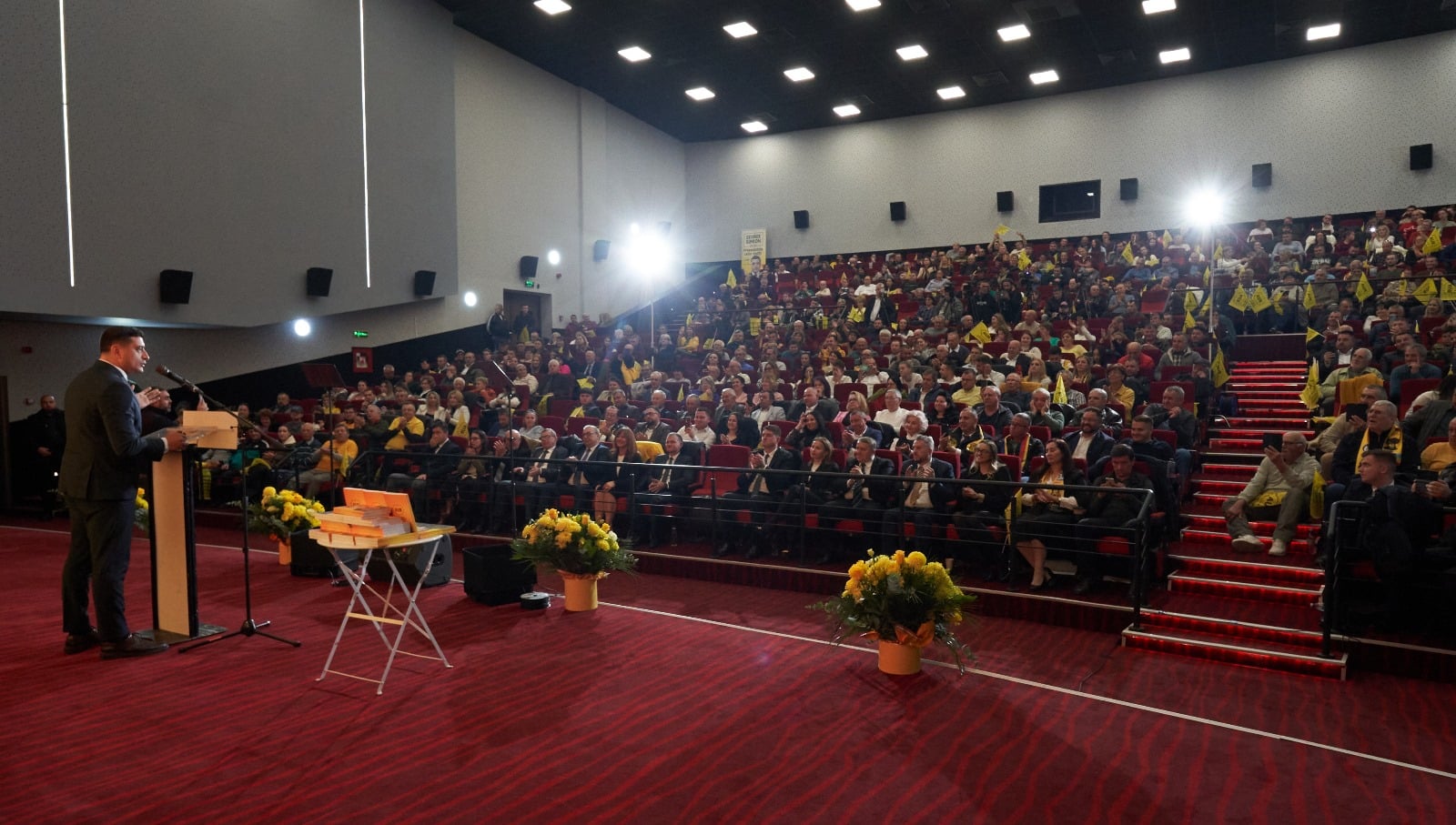 Dar vă spun aici, în fața voastră, cu mâna pe inimă, cum sunt și în afișul electoral, singurul lucru de care mă fac vinovat este că am luptat totdeauna de mic copil pentru România și pentru români. Și am îndrăzit să cred în unirea țării noastre, de la Nistru până la Tisa. Și am spus mereu cu voce tare că pe ambele maluri ale Prutului trăiește același popor. Ei mă numesc trădător pentru că nu mă plec în fața intereselor lor meschine. Dar o să-i întreb și vă întreb pe voi. Cine sunt adevărații trădători? Eu care militez pentru unire sau ei care au vândut Combinatul COS Târgoviște unor afaceriști ruși? Ei care și-au umplut buzonarele din banii publici în timp ce oamenii din Dâmbovița abia își duc traiul? Pentru că sunteți așa de mulți și vă mulțumesc că sunteți așa mulți și vă mulțumesc pentru eforturile pe care le-ați făcut în acești patru ani pentru poporul român și pentru România și pentru mișcarea noastră.