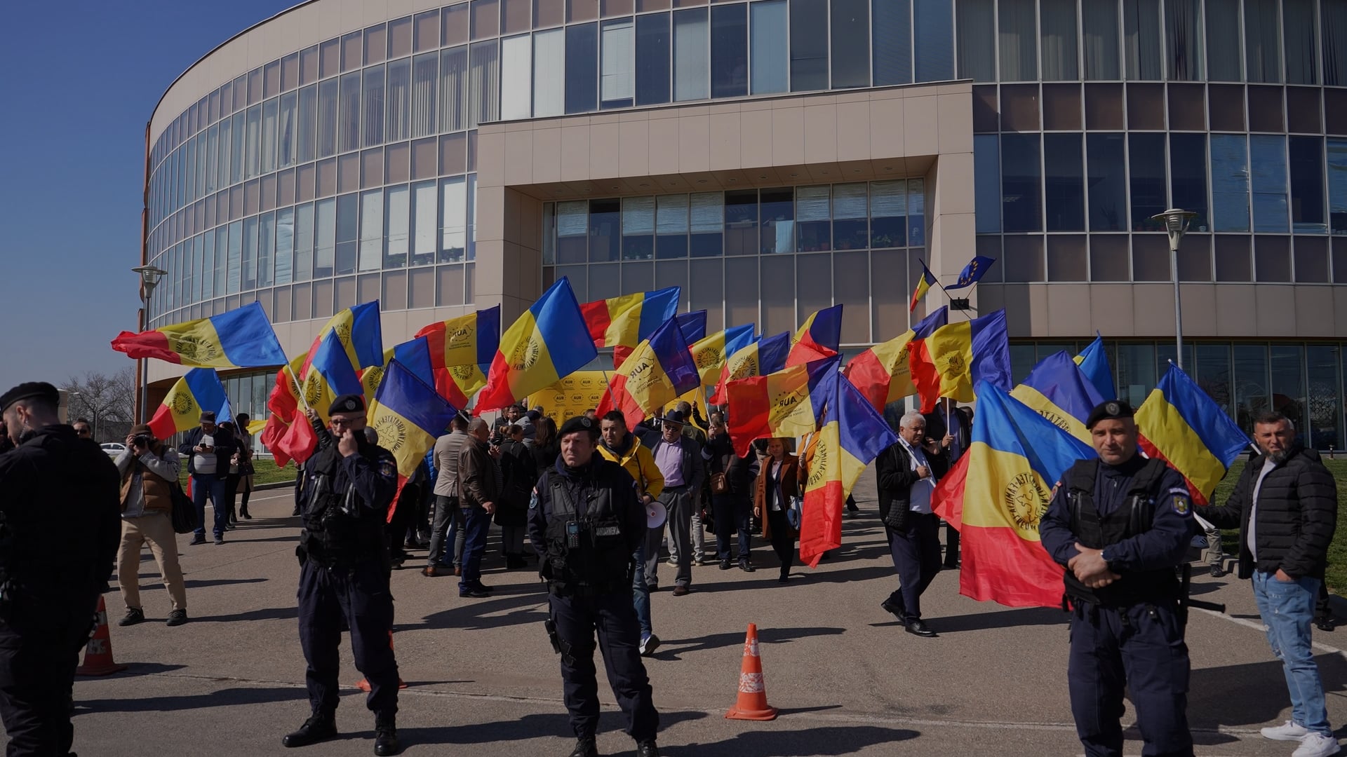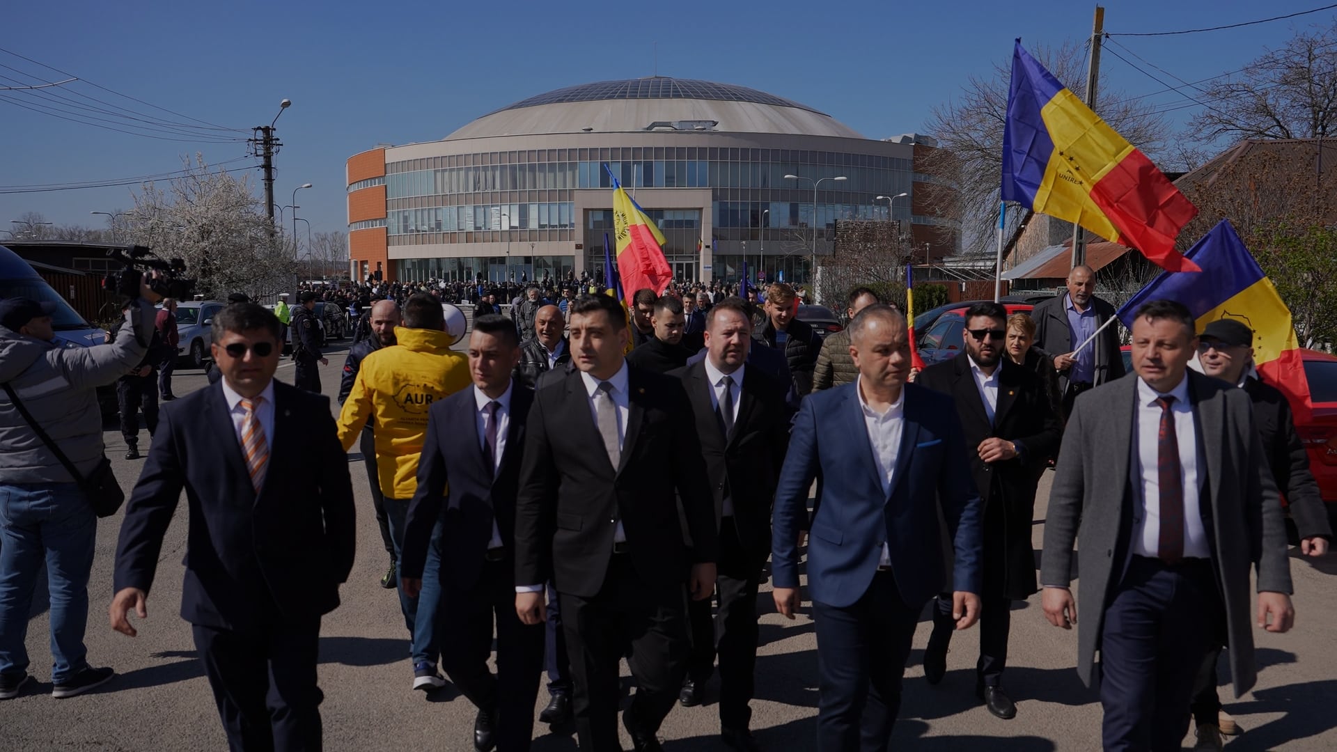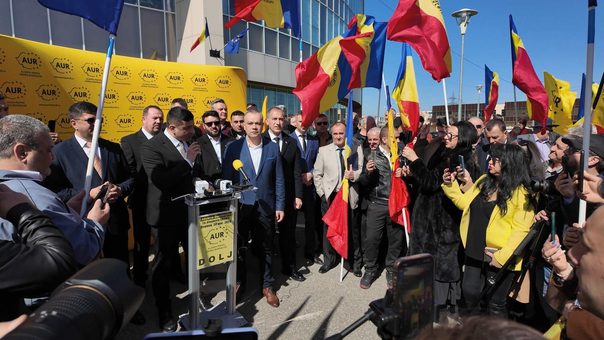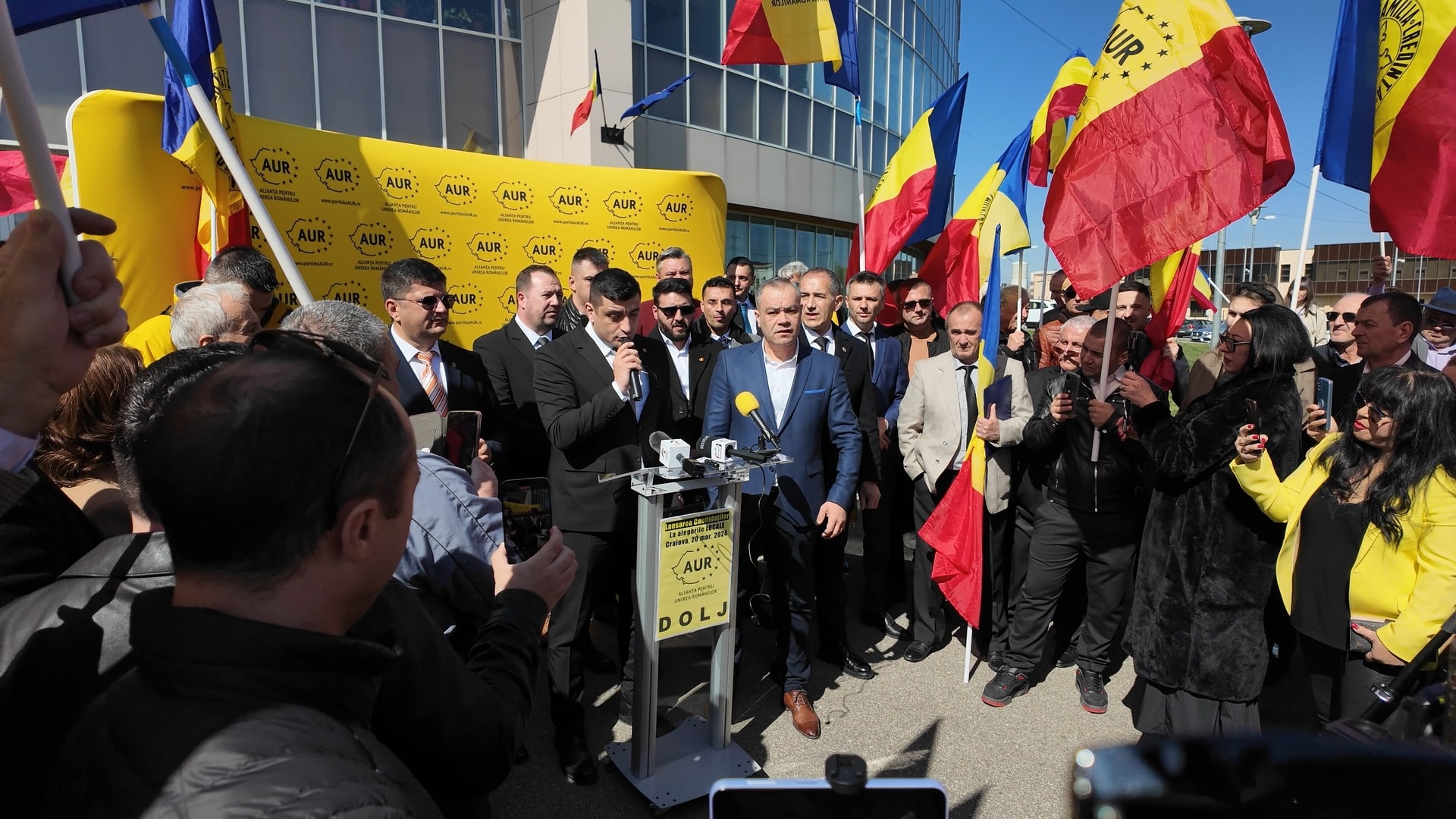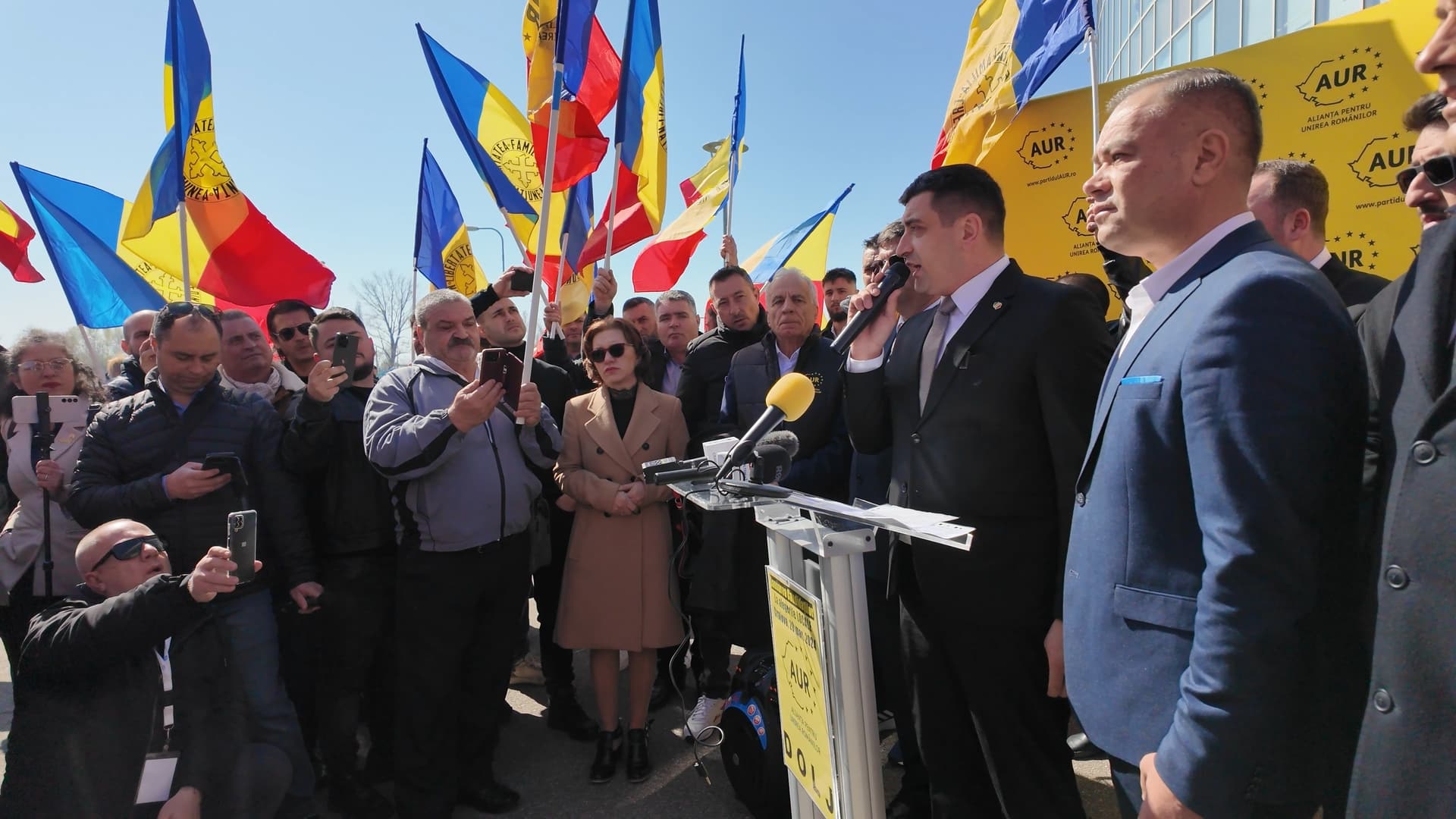 Înainte de acest moment, au tot încercat să ne trimită tot felul de intruși în rândurile noastre ca să deturneze partidul AUR în județul Dolj. Le-am transmis de la microfon același lucru pe care îl spun și aici: Nu suntem de preluat, nu suntem de vânzare! Degeaba tot încearcă să apeleze la tactici demne de un film sicilian, AUR este aici să le dea planurile peste cap!