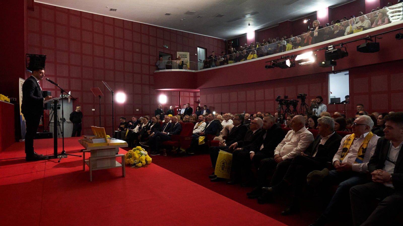 În disperarea lor ca să-l salveze pe Ciucă, l-a sunat Rares Bogdan, Rares Rujatu, l-a sunat pe bucătar. Și știm asta direct de la el, de la bucătar, că-i prietenul nostru. Ia uite cine a avut îndrăzneala să mă sune. Avem obligația să creem locuri de muncă noi, avem obligația să atragem investiții, să realizăm aici parcuri industriale reale, nu iluzii pe hârtie. Am dat mult prea mulți bani pe studii de prefezabilitate, de fezabilitate și nu s-a construit nimic concret. Sunt bucuros că ei nu ne-au lăsat și-s vine să construim acel spital din banii de subvenție. Și am creat Spitalul Mobil AUR. Și sunt bucuros că la Orbeasca, la Poieni, la Bragadiru, spitalul mobil a reușit să ajungă și îmi doresc din suflet, în zonele rurale, în zonele îndepărtate, modelul acesta de spitale mobile, de doctori care să ajungă în cele mai îndepărtate colțuri din județe, să meargă mai departe prin programe guvernamentale. Cred că am reușit să consultăm și să ajutăm peste 25.000 de oameni, așa cum am putut noi fără pârghii guvernamentale din opoziție. Cred că rețeta asta trebuie multiplicată și cred că un dicton al Uniunii Europene, Uniunea care e bună la dictoane și la lozinci, dar noi suntem mai buni ca ei pentru că noi suntem numărul unu.