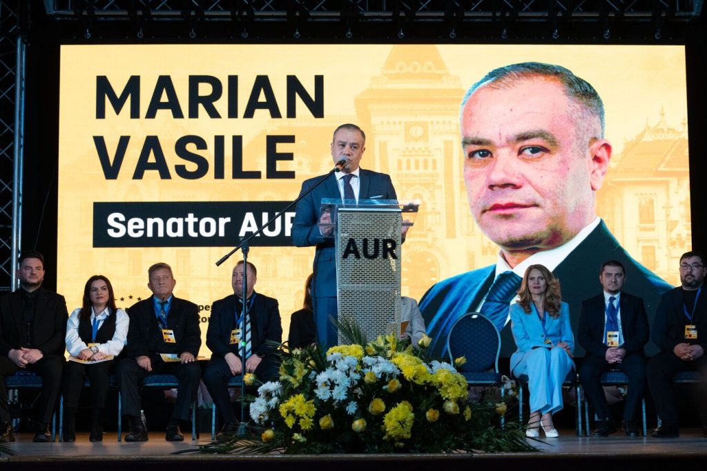 Sunt mândru de organizația cu care AUR se mândrește aici. Sunt mândru că pe lângă membrii de-ai noștri vechi, cum este Dan Păun, care a fost cu mine și cu Cosmin Iosub, încă de când nu exista partidul Alianța pentru Unirea Românilor, cu un an aproximativ înainte de alegerile din 2024, a venit alături de noi o echipă de oameni extraordinari, de oameni profesioniști, de oameni capabili și de oameni performanți din punct de vedere politic, care în celelalte partide nu și-au găsit locul. Și acum ei sunt ai noștri, au scos unul dintre cele mai importante scoruri pentru AUR în alegerile locale din 2024. Când încă nu eram atât de sus, când aveam alegeri comasate.