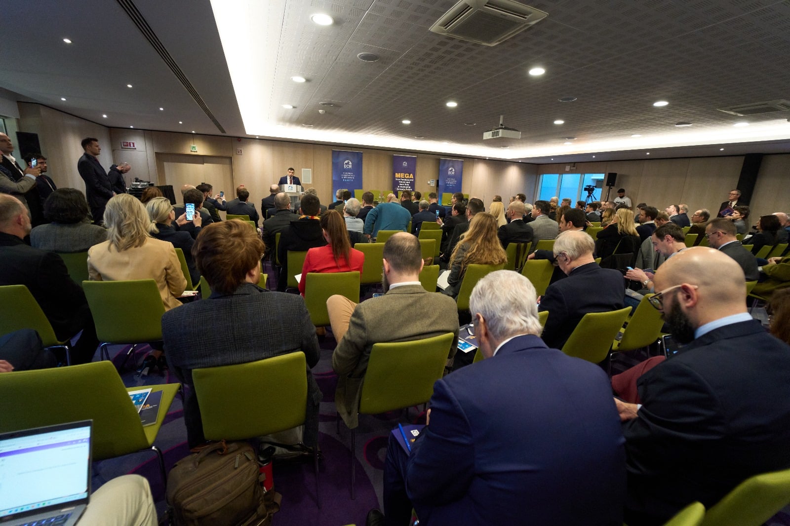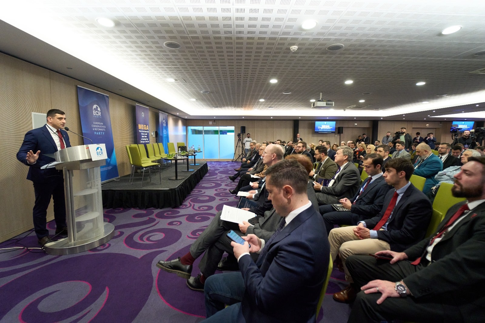 „Esteem guests, as I mentioned earlier, it’s an extreme honor for us, it’s a great honor that you are our guests, as all of you I have a leader, a boss, a president, and today we are talking as hosts in ECR party and my president is the former Prime Minister of Poland, Mr. Mateusz Morawiecki, so a warm welcome for my president!